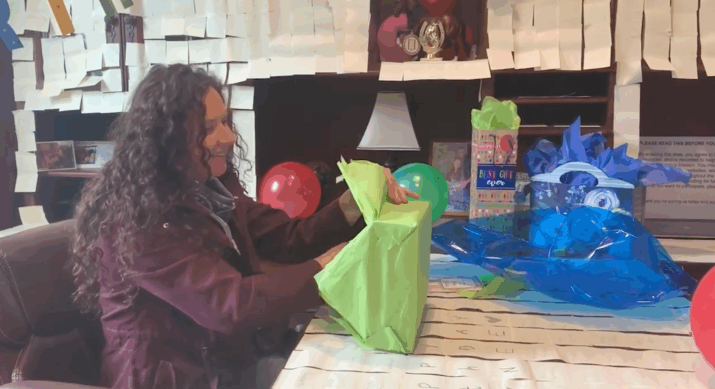 The crew went all-out to give Miss Tawnee the birthday she deserved. Shelby and the team spent the day blowing up what felt like a mountain of balloons—375 to be exact—and covering every inch of her office with “Happy Birthday” sticky notes. Confetti-filled balloons, banners, and a desk completely transformed into a rainbow of sticky notes made for a priceless reaction when she walked in.