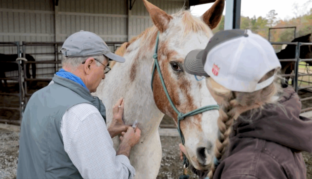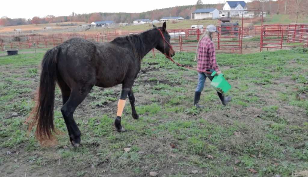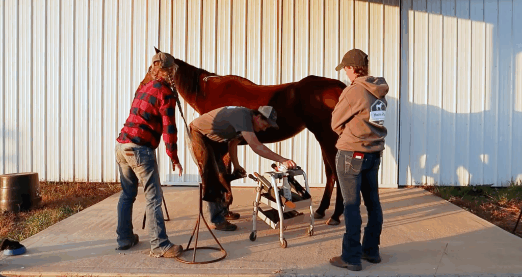 The episode opened with farrier work for Storm, a gentle mare dealing with very sensitive feet. To help her move comfortably into training and toward an adoptive home, the team applied a VetTech Equi-Pak CS pour-in pad. This antimicrobial and antifungal pad molds to the hoof and provides custom support and protection, allowing Storm to walk pain-free and confidently begin her next chapter.