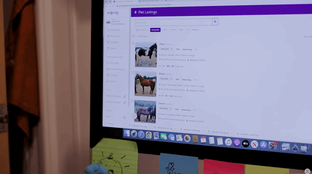 Behind the scenes, Petfinder plays a huge role in saving time and reaching adopters nationwide. Horses are listed, inquiries are tracked and adoption communication is streamlined, allowing the team to focus more energy where it matters most: caring for animals.