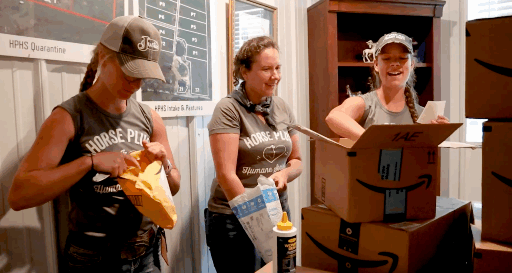 Thanks to our amazing supporters, the shelter has been overflowing with care packages from our Amazon wishlist, everything from essential supplements for skinny horses to mountains of cookies. These thoughtful contributions make a tangible difference in the day-to-day lives of our animals, helping them thrive while they wait for adoption.