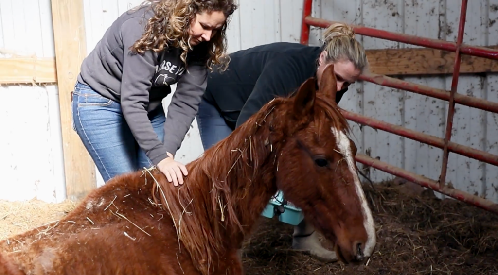Despite every effort, this horse suffered from refeeding syndrome, a dangerous condition where the body cannot handle nutrients after prolonged starvation. The team acted quickly and compassionately, easing the horse’s suffering.