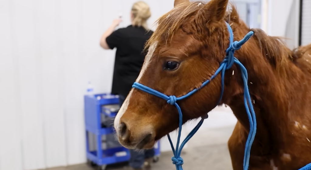 One horse undergoes surgery to remove severe proud flesh. It is a bloody and delicate procedure, but the goal is clear: healing and a chance at adoption.