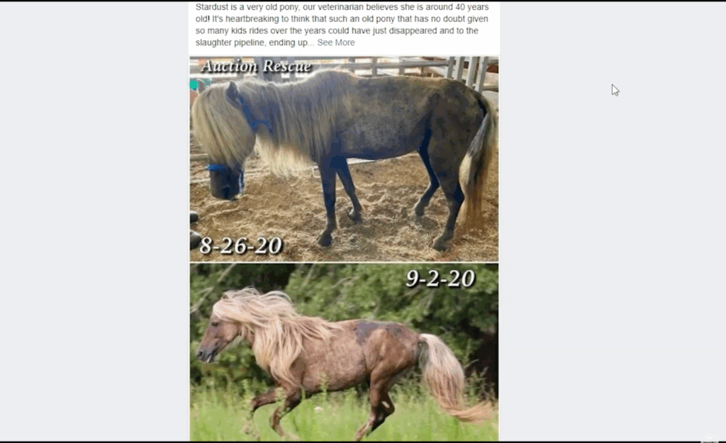 Stardust’s Transformation: Stardust captured hearts online when her pasture photos showed a bright, joyful pony just days after her rescue. Thank you for celebrating her transformation and for standing up for the truth when misinformation arose. Your voices help protect and uplift the work we do.