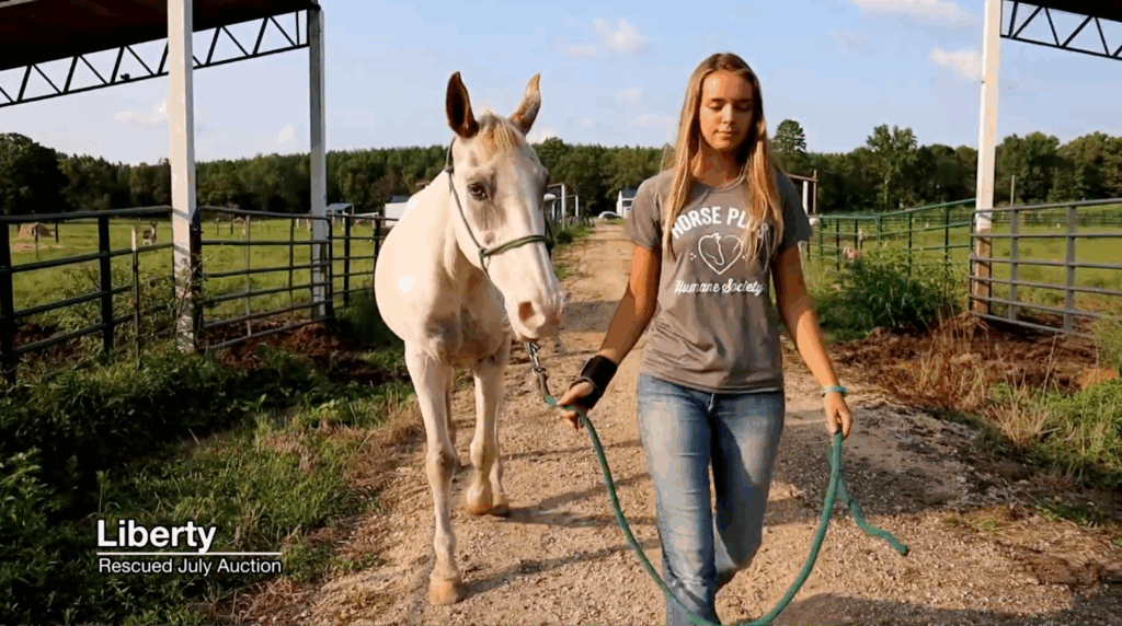 Liberty’s Progress: Rescued thin from the July auction, Liberty has already gained 50 pounds. Her steady progress is a beautiful reminder of how quickly horses can blossom when given proper care, nutrition, and love.