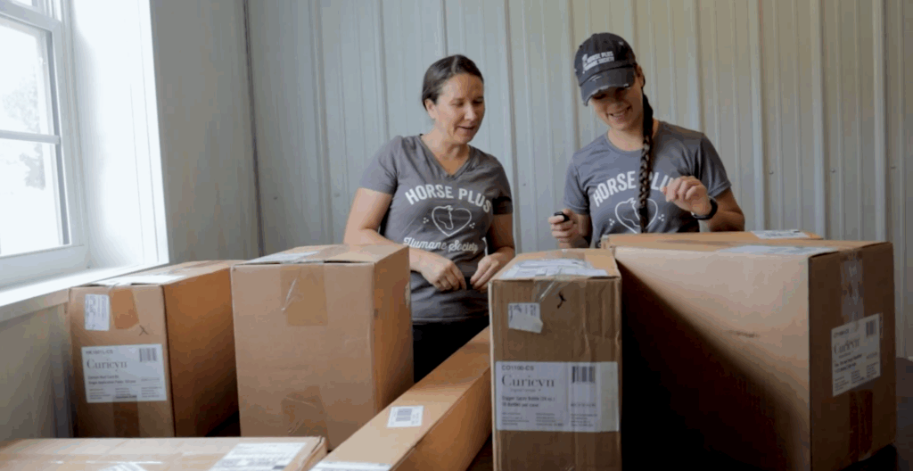 On the very same day, UPS delivered boxes filled with donated supplies including fly spray, tick repellent, triage kits, skin care solutions, and more. Every item was something our rescued horses will use as they heal and begin their new journeys.