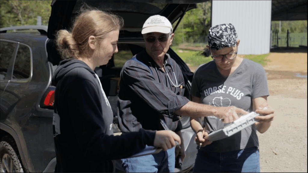 Our team evaluates horses with eye tumors, founder, injuries, and advanced illness. The environment is fast paced and emotional, but focused assessment allows us to act quickly. In one day, 33 equines are rescued, each one stepping off a trailer and into safety.