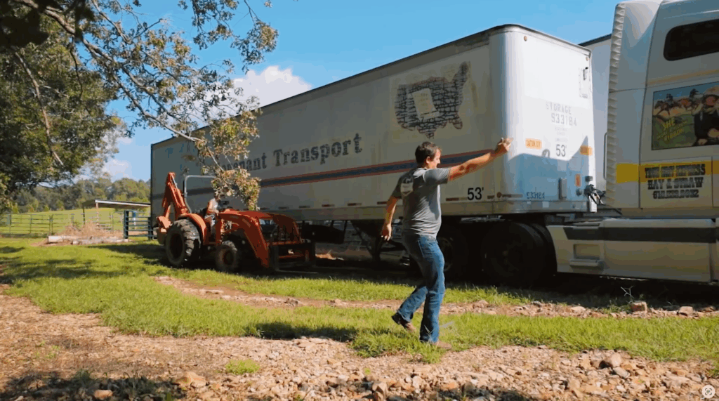 A semi load of alfalfa brings unexpected chaos when a trailer gets stuck. The solution is simple but exhausting. Unload it all by hand in hot, humid weather.