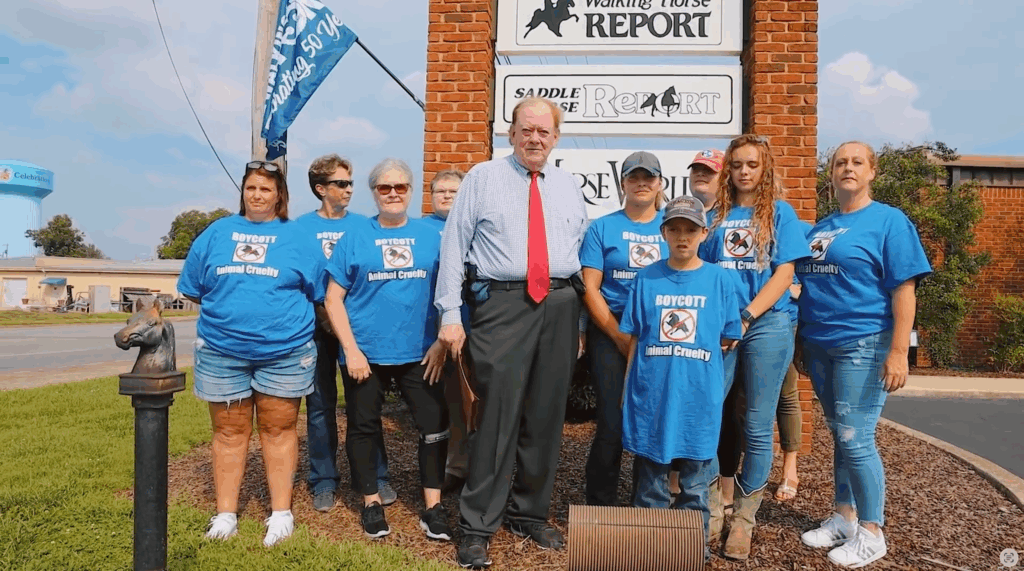 They join advocates from across the country, speak with local media, and peacefully protest to raise awareness. From heavy stacks and sore chains to children riding without helmets, the team speaks for the horses who cannot speak for themselves.