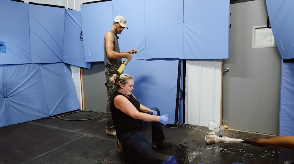 Remember Mary and her “giant hangnail” hoof injury? This week, Dr. Nancy and Elijah teamed up for a surgical procedure that was pure MacGyver. Using Gigli wire (a specialized cutting wire), they performed a flush removal of the damaged hoof tissue.