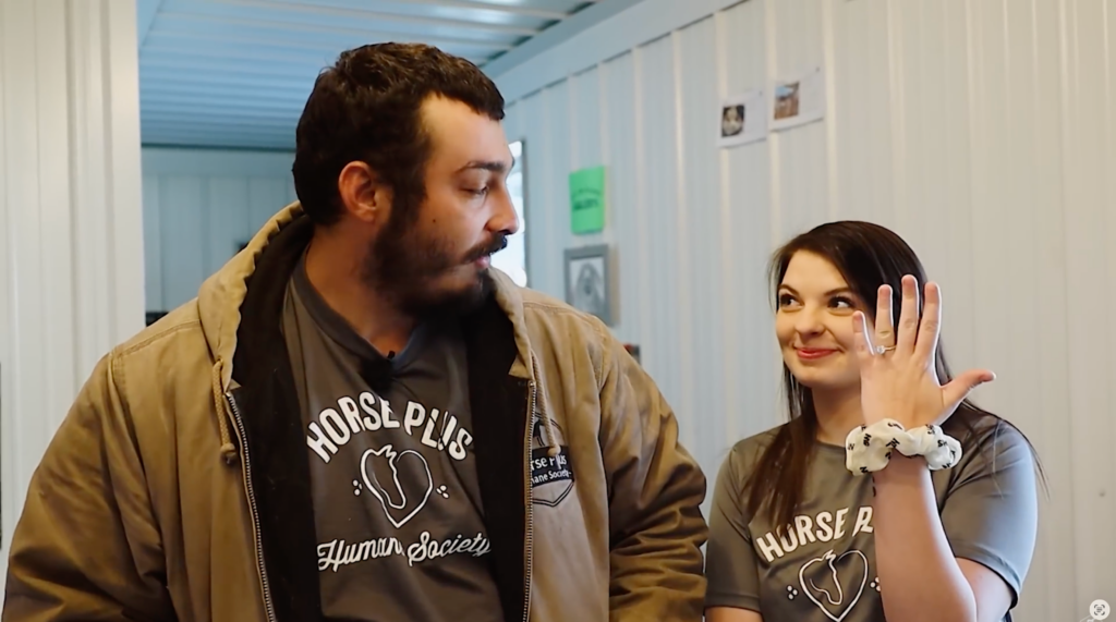 We have a very special “Rescue Romance” announcement. Our trainer Kory and staff member Caitlin are engaged! They actually met right here at the shelter when Caitlin came to adopt a horse named Ruger back in November.