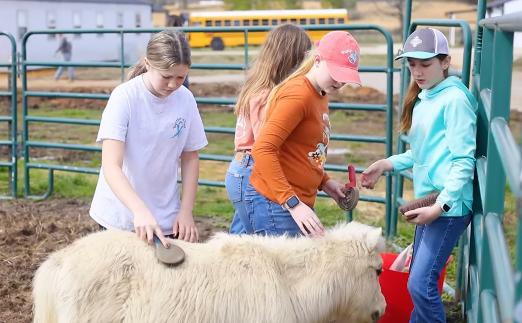 Students visiting for a volunteer day jump right into the work, cleaning, organizing, and even spending time with the animals. Their energy and willingness to help show how powerful community support can be.