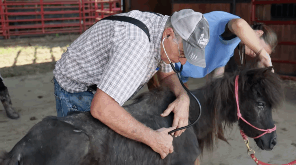 Once back at the shelter, veterinary evaluations revealed what auctions often hide. Ringbone, arthritis, eye injuries, hoof neglect, infections and reproductive issues surfaced quickly.