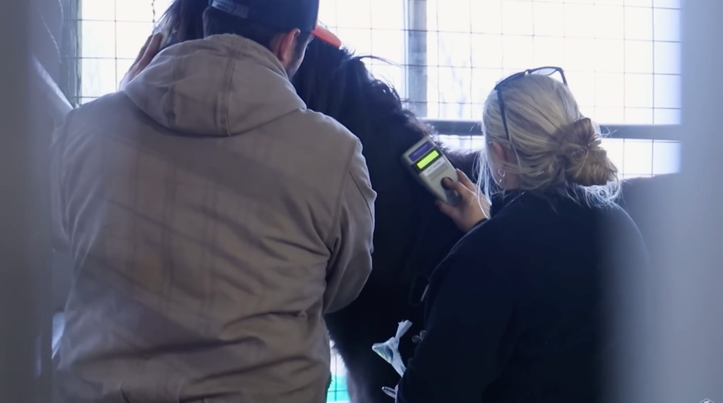 Dr. Nancy moved from stall to stall with thermal microchip scanner in hand, checking temperatures instantly, minimizing stress. X-rays lined up. Treatment plans forming in real time. No delays.