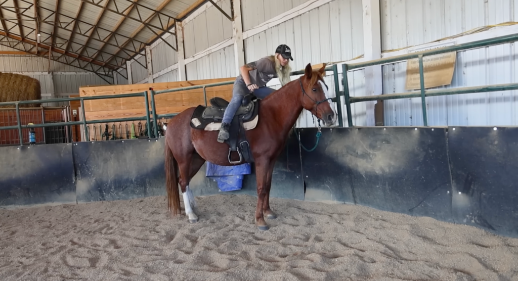 Our girl Jill is making incredible progress! We’ve been working on “desensitizing” her, making sure she’s comfortable with the sound of stirrups, pressure on both sides and even a little weight in the saddle.