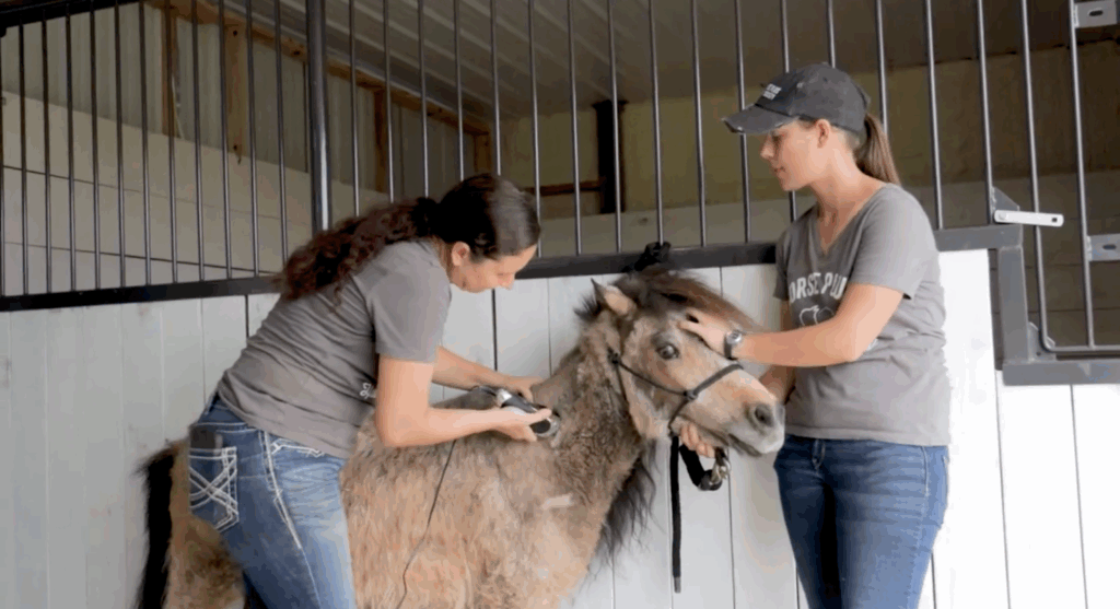 Then it was another mare’s turn. Covered in thick winter fluff, she stepped into her own makeover session. After a careful clipping, she emerged refreshed and radiant, ready to take on spring with style.