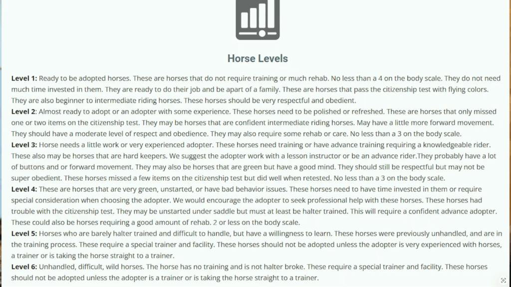 While we know it is disappointing for potential adopters, our priority must always be the safety of both the animal and the human. Unhandled horses require a high level of expertise or a committed professional trainer. When we feel a match isn’t safe or if there are red flags regarding the long-term care of the horse, we have to stand our ground.